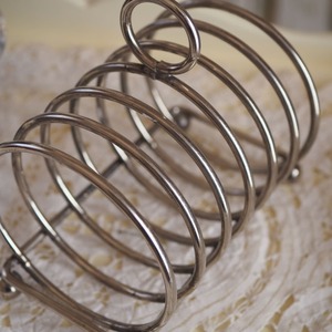 薄めのトーストをカリッと美味しく食べるためには立てて置くのがベスト。クラシックなサービスをしているホテルでは今も朝食でお目見えするシルバーのラックです。