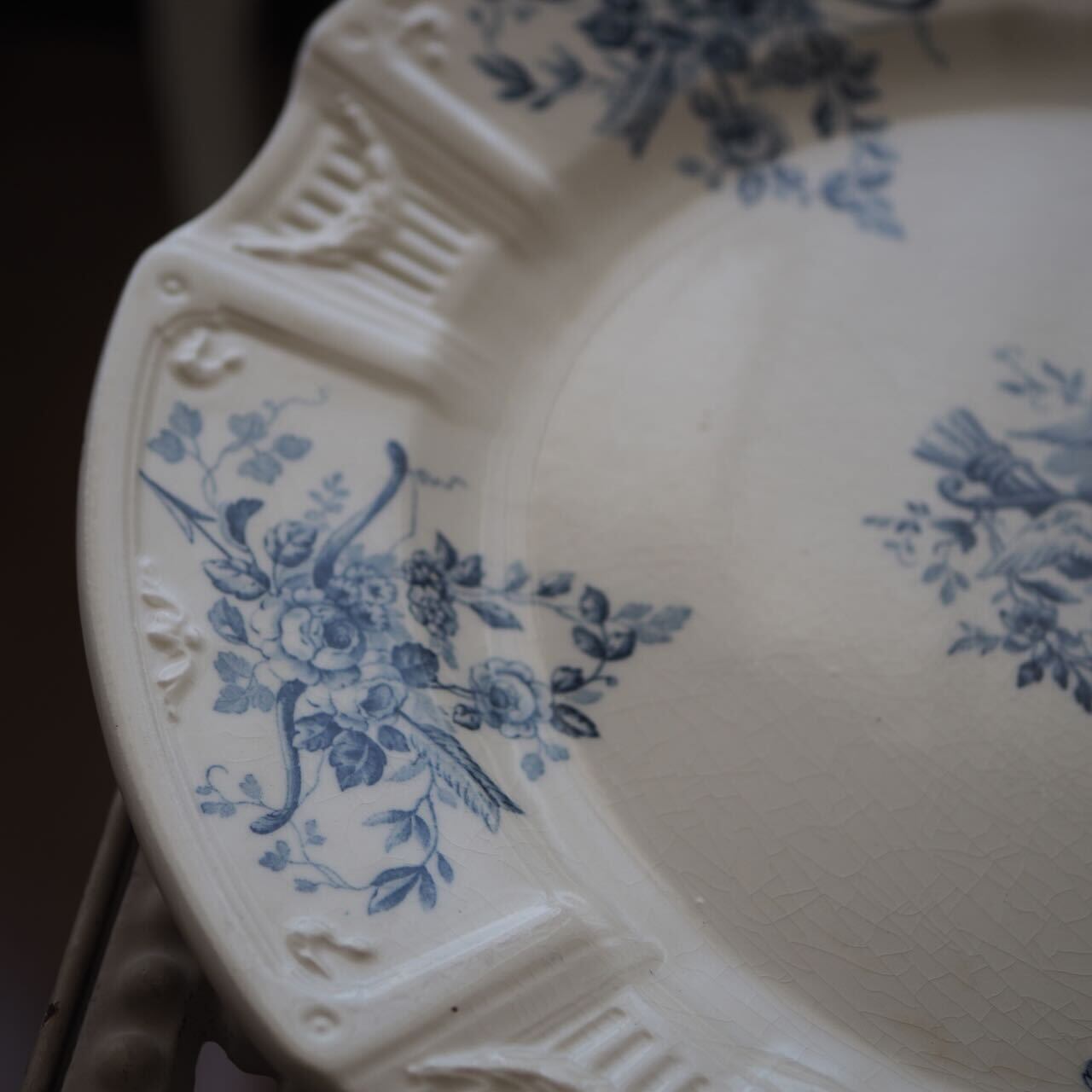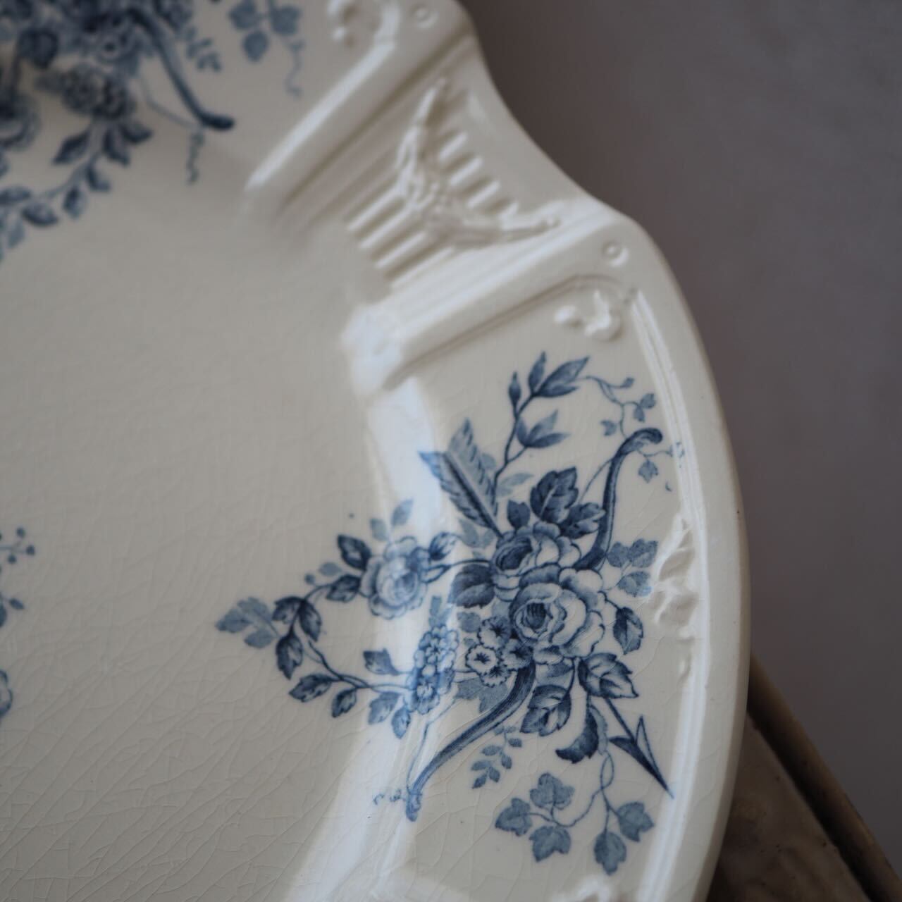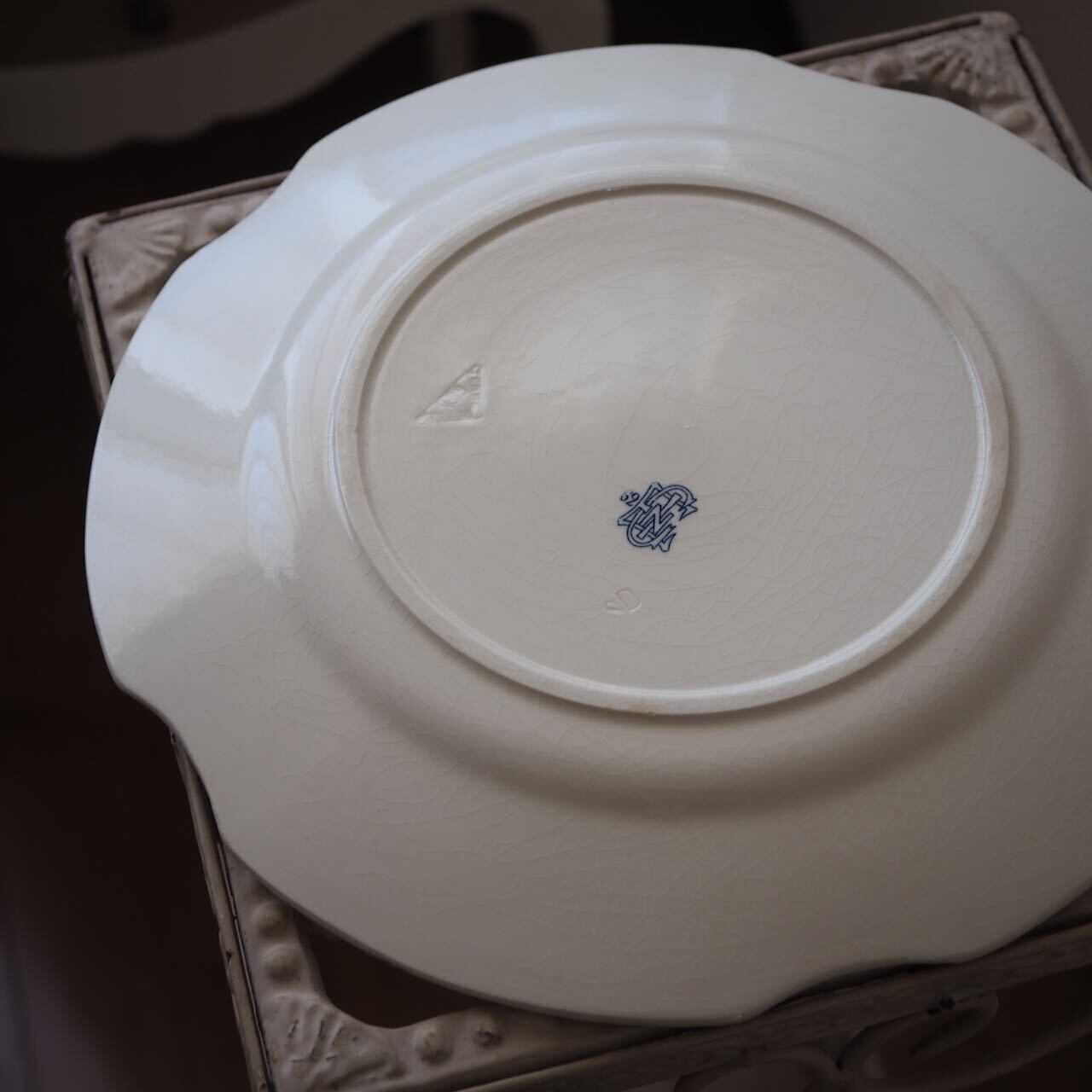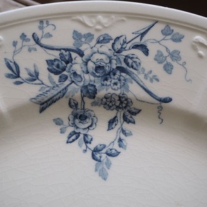 オフホワイトにジアン・ブルーで描かれた鳩と花々。鳩には様々な意味がありますが、つがいで描かれていること、矢が描かれていること、バラが描かれていることから、やっぱり「愛」「平和」がテーマのお皿なのだと思います。