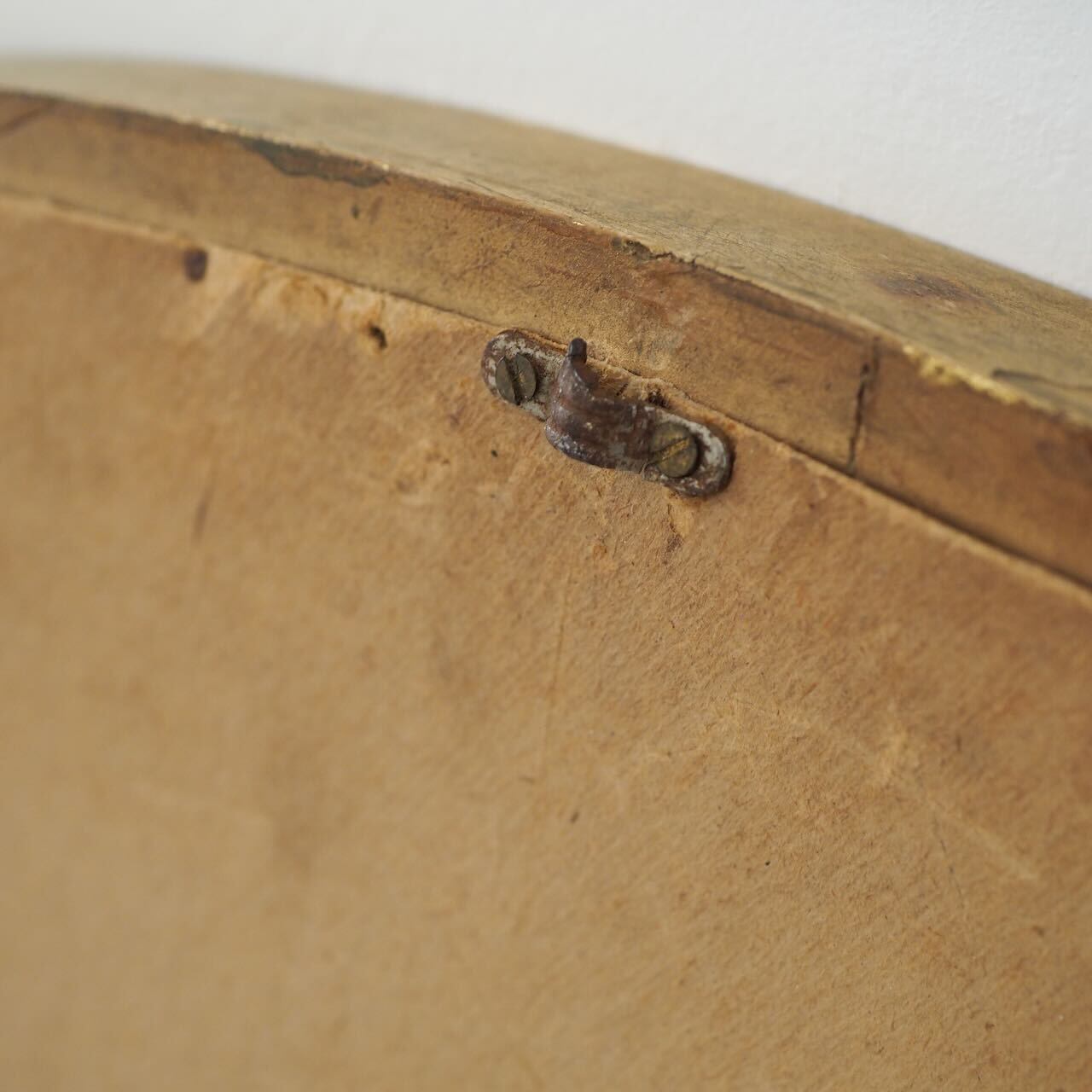 ミラー面やフレームは大変良好な状態です。鏡に曇りも見られません。裏張りにシミがあります。またフレームに一部経年によるシミのようなものができていますが、それもアンティークの風合いとしてお楽しみください。