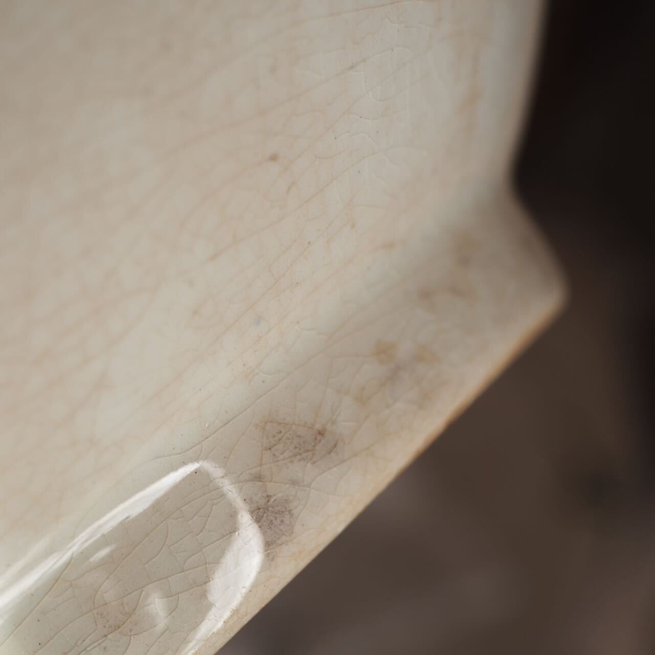 全体的にたいへん良好な状態ですが、年代相応の貫入からの色づき、若干のスレや小傷、シミなどがございます。これらは経年変化の一部としてお楽しみください。