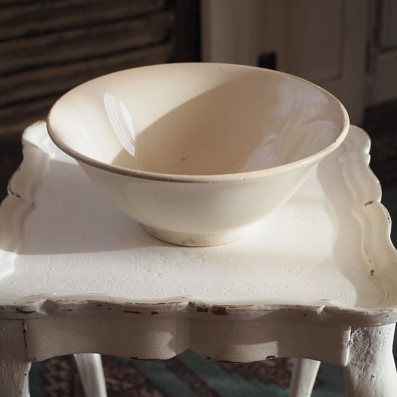 象牙色の陶肌、経年による色づき。枯れた風合いが美しすぎる器です。窯はショワジー・ル・ロワ。1878年のスタンプが付いています。絵柄がついた器も素敵ですが、長い時を経たアイボリーの器は形容し難い魅力があります。色づきは時と環境、偶然がなせる技。唯一無二の存在です。