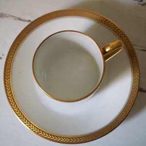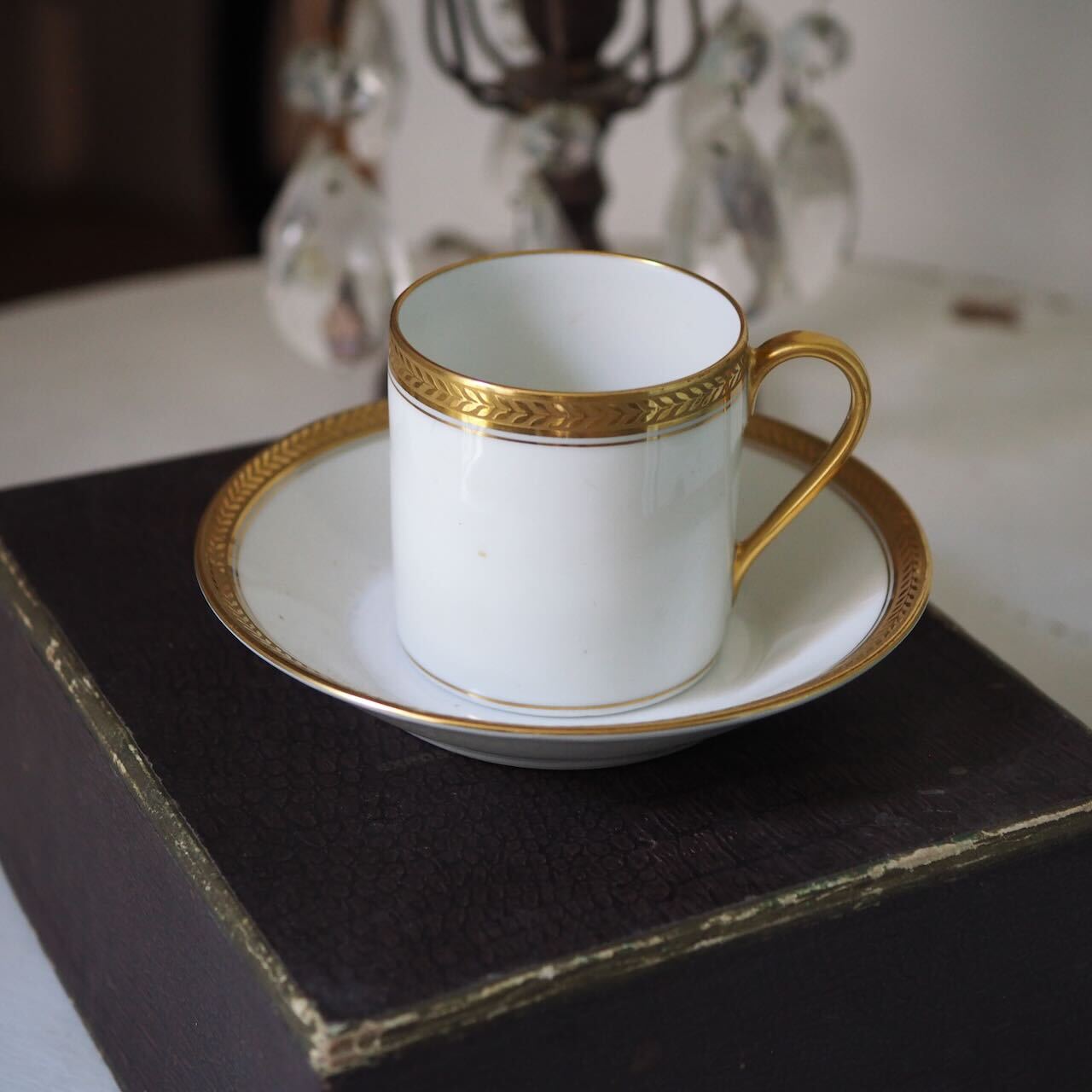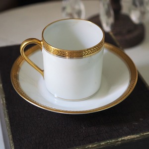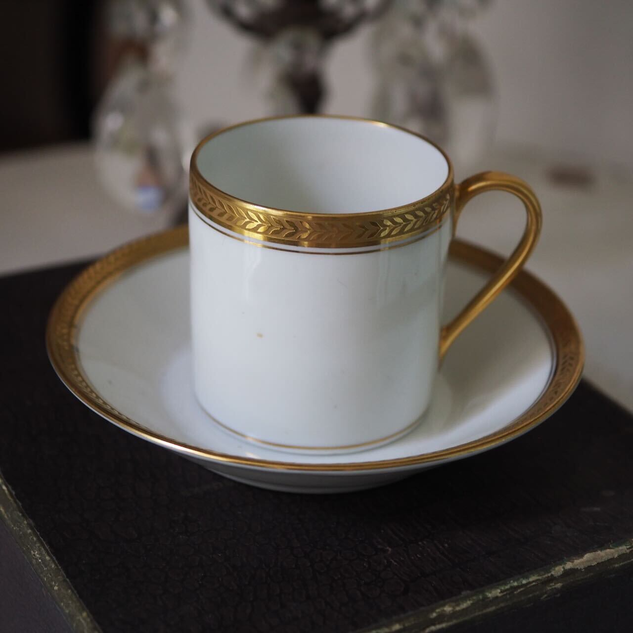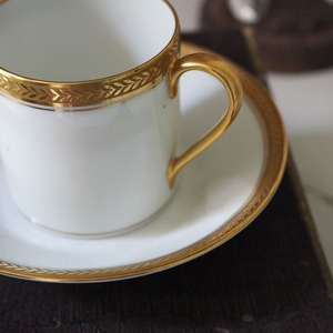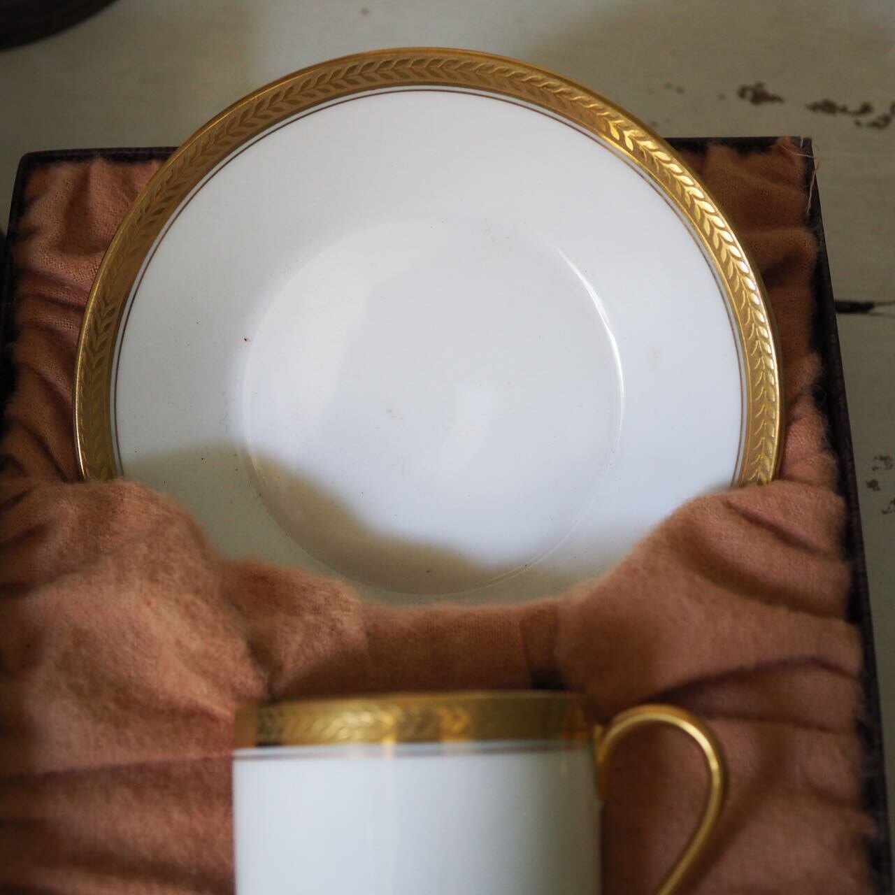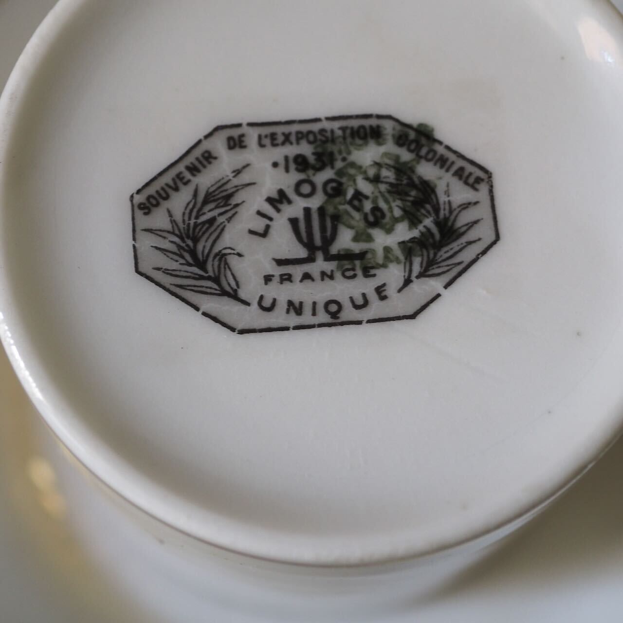 パリで1931年に開催されたコロニアル博覧会を記念して作られた、リモージュのデミタスとソーサー、化粧箱入りです。高品質の磁器に美しい金彩。いつまでも色褪せることがない、王道クラシックです。同じエスプレッソもいい器で飲むと美味しく感じられるから不思議です。